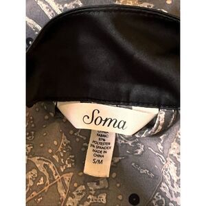 Soma Women's Foiled Chiffon Satin Paisley Short Robe Gray Black Size S/M