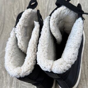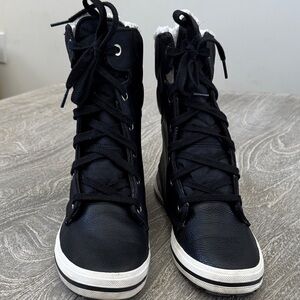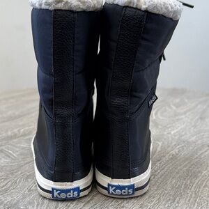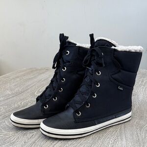 Stylish Keds high-tops in black. Features cozy lining and white trim. Perfect for casual wear.
