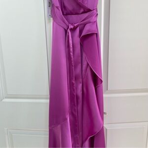 NWT Premier Amour Pinky Purple Hi Lo Ruffle Spaghetti Strap Zip Belt Dress Party