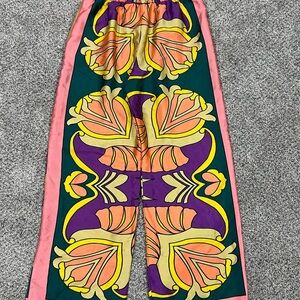 Zara Colorful Printed Satin Pull On Pants Elastic Waist Wide Leg Women’s Size S