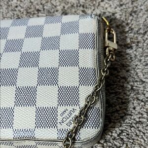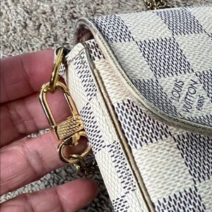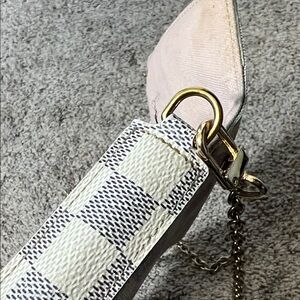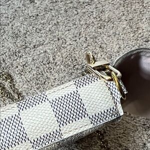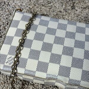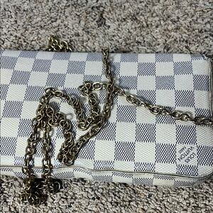 Stylish checkered beige and white bag with a chic chain strap. Perfect for any occasion. Preloved bag so kindly manage your expectations, some stains inside , provided crossbody bag chain, faded hardwares, some dent on the bottom of the bag pls see photos and selling as is during live show