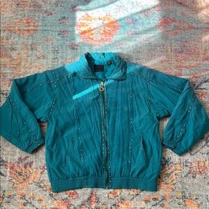 Elevate your style with this elegant teal bomber jacket. Perfect for any occasion. Vintage. Great used condition. Women’s size small.