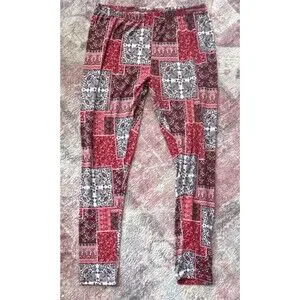 Bobbie Brooks Women's XL Ankle Leggings Pink Red Geometric Stretch 2-Pack