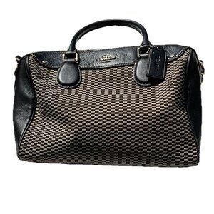 Coach Mini Bennet Satchel Tote Purse Brown Tan Checkerboard Zipper F57242