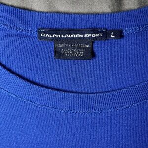 Ralph Lauren Sport long sleeve crewneck shirt in a versatile blue color. Features the iconic embroidered pony logo for a timeless, casual look that pairs easily with jeans or layered outfits.