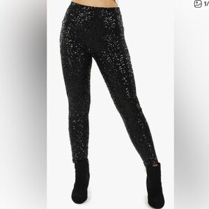 Tipsy Elves Trendy Sequin Glam Black Legging Pants