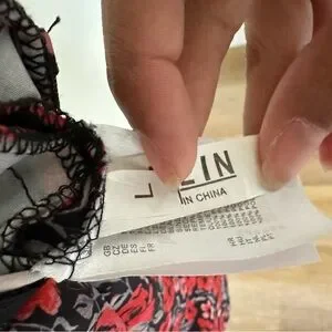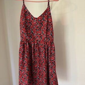 This elegant floral dress features a striking red and black pattern, perfect for any occasion. Its flattering design and vibrant colors make it a must-have addition to your wardrobe. It’s a bit big on me so it would look much better on someone size L.