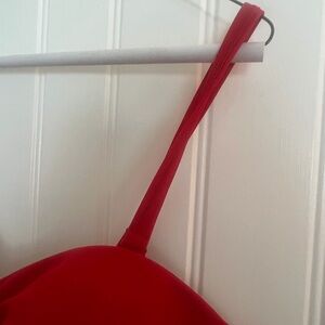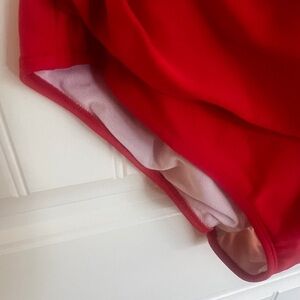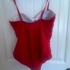 Elegant red one piece with a flattering twist front. Very Esther Williams and super comfortable and supportive. Worn a few times but very clean and in near perfect condition thanks to strong J.Crew quality. Detachable straps if you prefer strapless. Ideal for beach days.