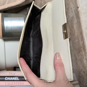 Elegant Gucci wallet with iconic beige monogram. Features bold red and green stripe accent.