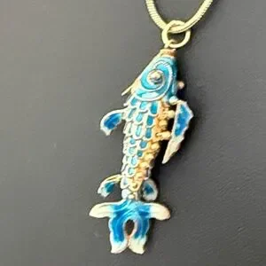 Cloisonné Articulated Koi Fish Pendant With Blue Enamel Necklace