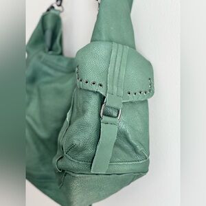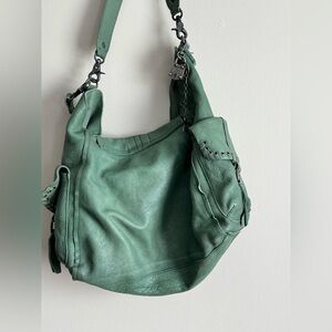 The ultimate oversized hobo bag! This is the Full Size We The Free Leigh Distressed Tote from Free People in the stunning, hard-to-find Secret Sage color.