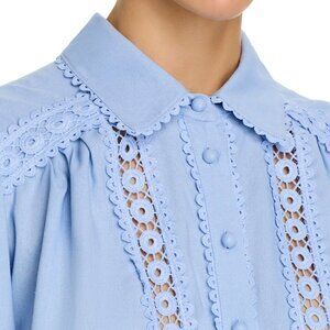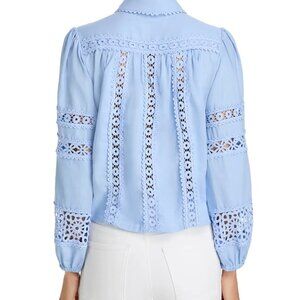 AQUA Blue Lace Crochet Detail Button Up Long Sleeve Blouse Women's size M