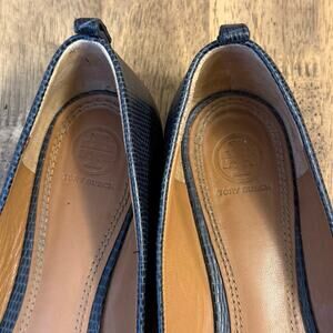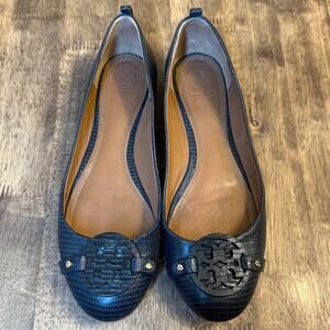 Tory Burch Ballet Flat Mini Miller Logo Leather Matte Micro Tejus Blue Size 9.5