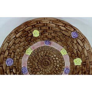 Vintage OCI Bonnet Plate Ceramic Brown Basket-Weave Hat Spring Easter Flowers 8"