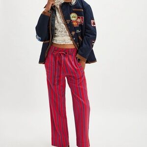 Vibrant red and purple striped pants with a drawstring waist. Perfect for a bold fashion statement. Super comfortable with pockets and tie waist. Excellent condition, worn one time