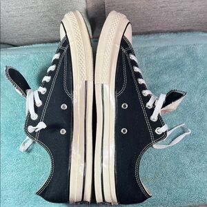 Classic Converse Chucks 70s All Star Low top Black canvas with white accents. Iconic design with durable construction. Excellent condition