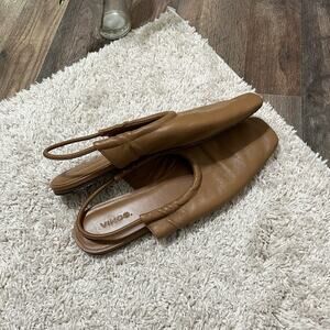 Vince 9.5 M Camel Brown Vero Cuoio Leather Square Toe Versatile Cadya Flats