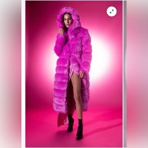 Barbiecore, Maximalist, Faux Fur, Hooded, Trench, Statement Coat, Rare, Sold Out, Winter, Festival, Glam, Y2K, Streetwear, Hot Pink, Colorful, NYC, fashion week, New York style, fur long coat, fur trench, winter style, chic, unique