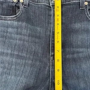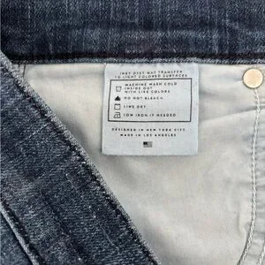 These great jeans are by AYR. A nice, medium blue color. Whiskering at the crotch and knees. Lots of pockets! Measurements are pictured above. These are in excellent condition with no tears, stains or funny smells
