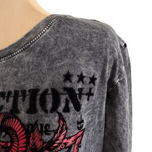 Vintage Y2K Affliction Braided Back Velvet Art Top Acid Wash Metal Rock Indie