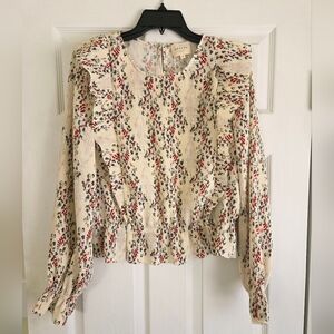 Elevate your style with this chic floral print blouse. Perfect for any occasion, this cream-colored blouse adds a touch of elegance to your wardrobe. Excellent condition, brand new but no tags, size- L(42). Very clean house. Thanks for watching 😀🫶
