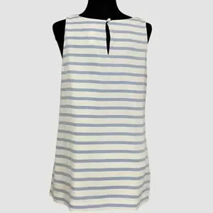 NWOT J Crew light blue and white striped 100% silk sleeveless shell top with keyhole back button closure. Size 8. Fully lined.