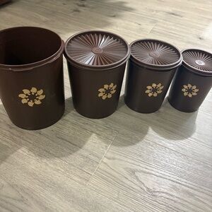 Vtg Set Of 4 Tupperware Brown Mushroom Nesting Servalier Canister W/ 3 Lids