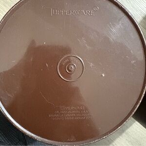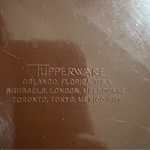 This vintage set of 4 Tupperware brown mushroom nesting Servalier canisters comes with 3 lids. Made of plastic, these canisters feature a snap-on lid and a unique mushroom pattern. The set includes original Tupperware brand canisters with varying lengths and heights, perfect for retro kitchen storage and organization. Made in the United States, this collectible set is a stylish addition to any vintage kitchen decor.