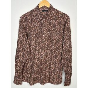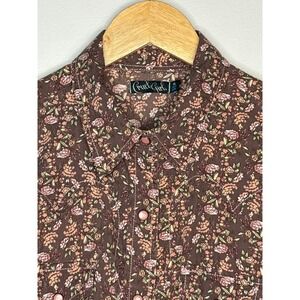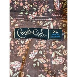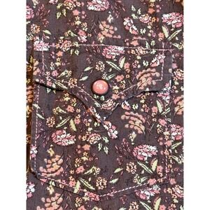 Cruel Girl Floral Print Pearl Snap Western Long Sleeve Shirt Brown Pink Women XL