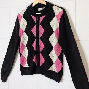 Vintage y2k Tail silk cotton preppy argyle zip front cardigan