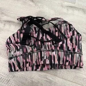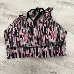 Pink and Black Patterned Sports Bra