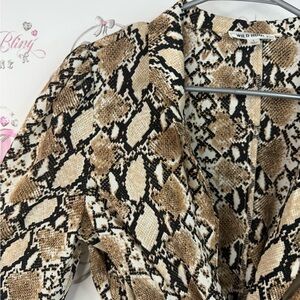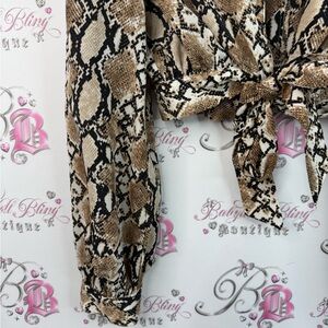 Wild Honey long sleeve cropped tie up ribbon shirt Snakeskin Tie-Front Blouse