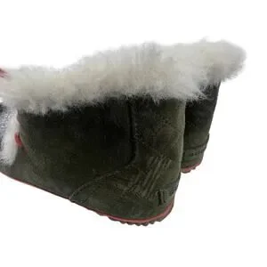 Sorel Out N About Moccasin Slipper Boots Size 8.5 Gray Green Suede Faux Fur