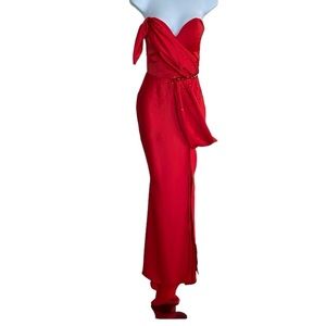 Ritchie Teves Red Strapless Sequined Evening Gown S