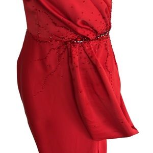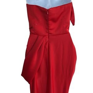 Ritchie Teves Red Strapless Satin Sequined Evening Gown S zipper back, very small train in back, lined bodice with stays. Very fitted too, left side slit