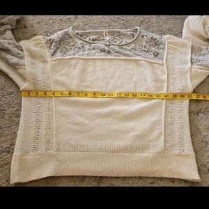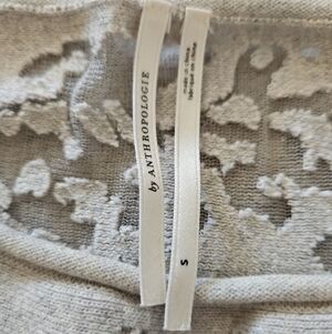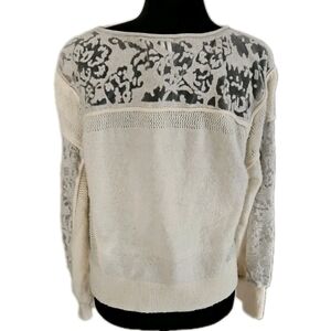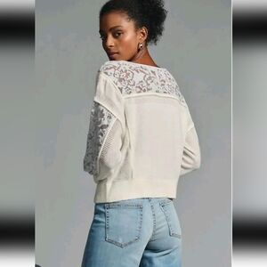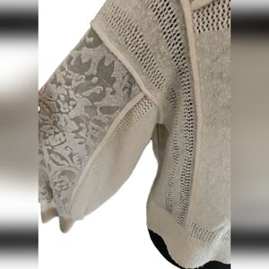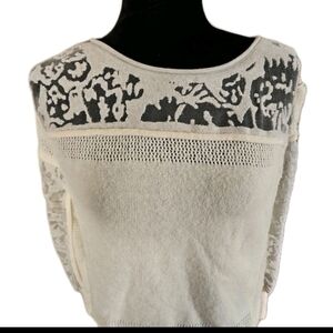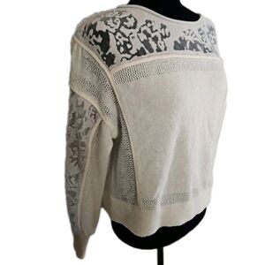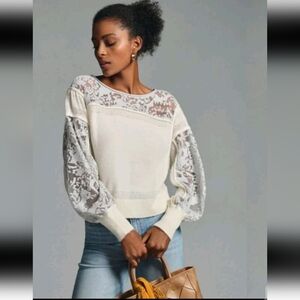 Anthropologie Womens Cream Sheer Balloon Sleeve Wool Blend Soft Feminine Sweater