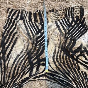 Brand new easy pull on style pants in no wrinkle travel fabric. These feature an exotic abstract print with subtle shimmer. Very long inseam great for a tall gal! The leg silhouette is in between straight and wide in my opinion.