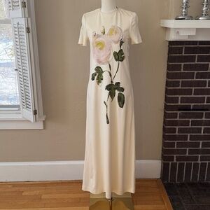 NEW OSCAR DE LA RENTA Sz 2 women's floral jersey maxi dress cream painted roses
