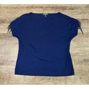 Lauren Ralph Lauren Women’s Drawstring Shoulder Boat Neck Blouse Navy Size L