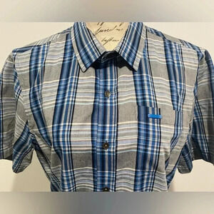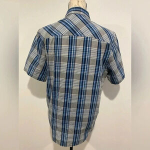 Travis Matthew Mens Blue Gray Plaid Short Sleeve Button Down Golf Shirt Medium