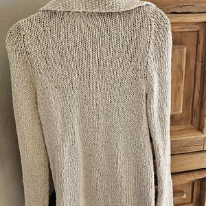 So cute & stylish soft beige knit toggle closure cardigan. Ideal for layering & can be worn year round. EUC