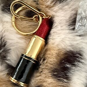 Chic lipstick key holder. Gold and black design. Perfect for fashion-forward accessory lovers.