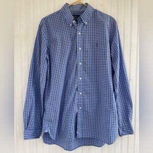 Ralph Lauren Men's Blue White Pink Plaid Button Down Shirt Size Medium