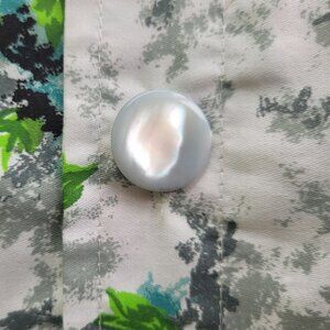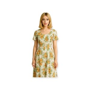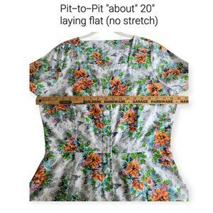 Capture timeless style with this cheerful 1960s floral housedress in size medium. Its elegant pattern and flattering fit give major retro-movie vibes—perfect for anyone wanting classic silver-screen flair without the paparazzi!