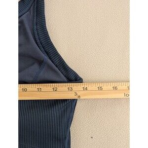 Ribbed tank top with racerback design. Soft and stretchy fabric. Perfect for workouts or casual wear.