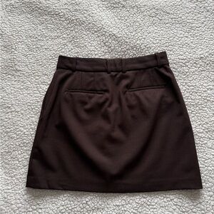 EUC. A bit too mini for me (I’m 5’8.5 with a 33inch pant inseam). Dark brown, first image is to show fit and style. From Aritzia: This is a high-rise mini pencil skirt with trouser-like detailing and a darted back waist for shaping.