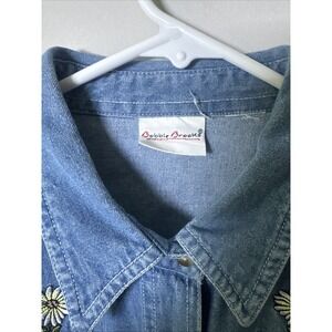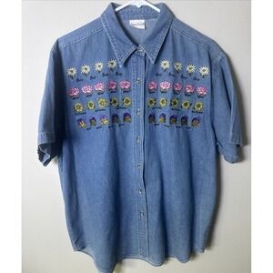 VTG Bobbie Brooks SZ LG XL Embroidered Denim Button Down S/S Flowers Garden