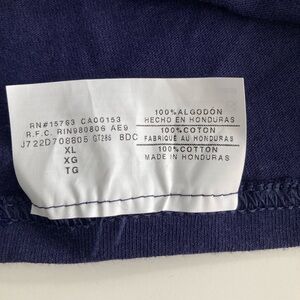 Set of two men's Penn State Nittany Lions T-shirts, both size XL. One is short sleeved and one is long sleeved so you can represent your team all year long! Both feature the Penn State logo and text design with the long-sleeved tee including the year 1855. Colors include two similar but slightly different shades of navy blue, white, and pale gray. Long-sleeve is 100% Cotton, short-sleeve is 60% Cotton, 40% Polyester.