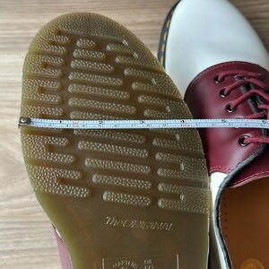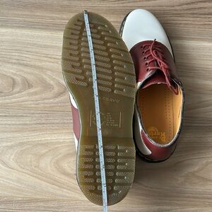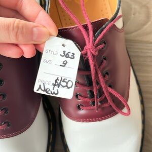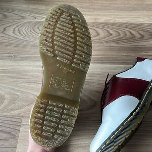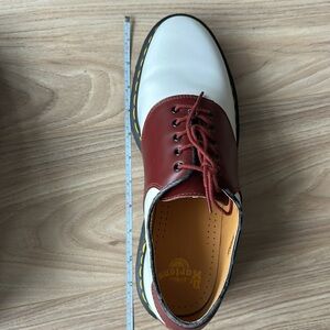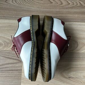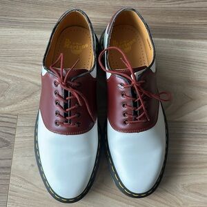 A pair of Dr.Marten’s two-tone Oxford shoes in white and burgundy. NWT from a boutique shop. Size 10 US Men’s, or Size 9 UK men’s.