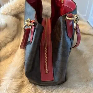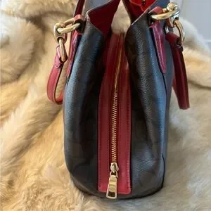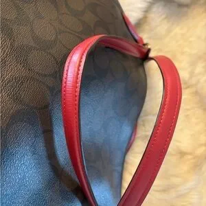 Elegant Coach women's bag in brown with striking red accents. Beautiful condition. Perfect for any occasion.